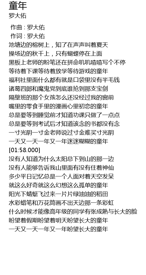 | [01:47.000] | 一天又一天一年又一年迷迷糊糊的童年 |