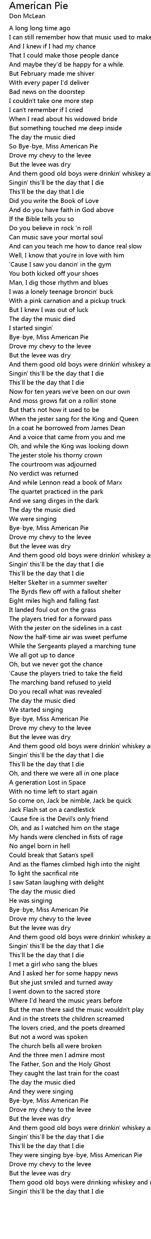 American Pie Lyrics