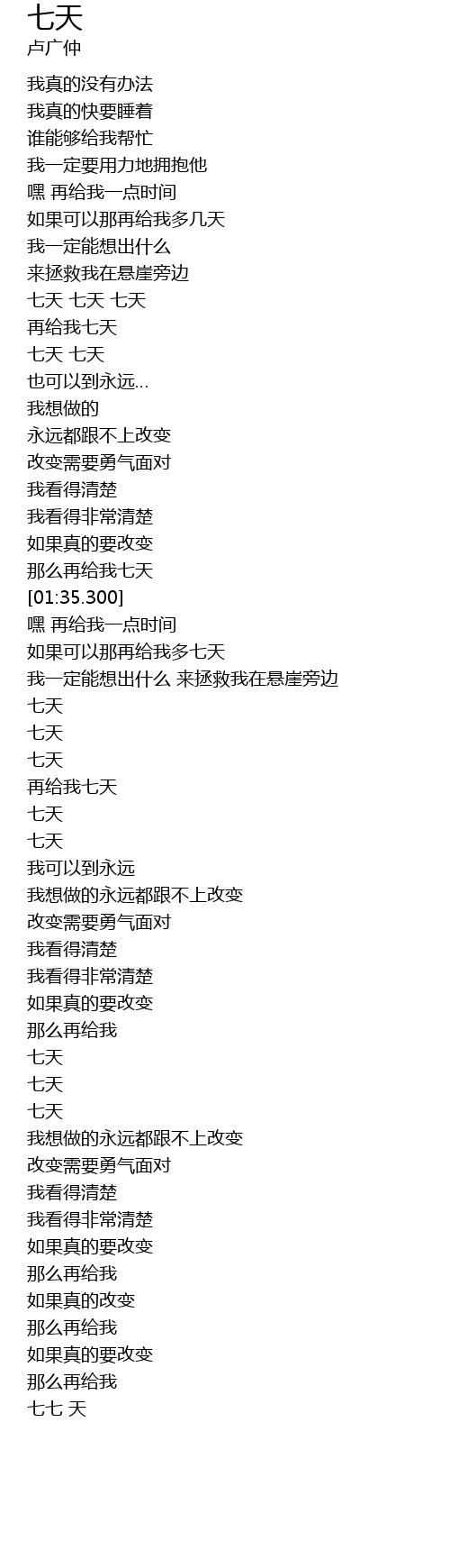 | [01:09.250] | 七天 七天 |