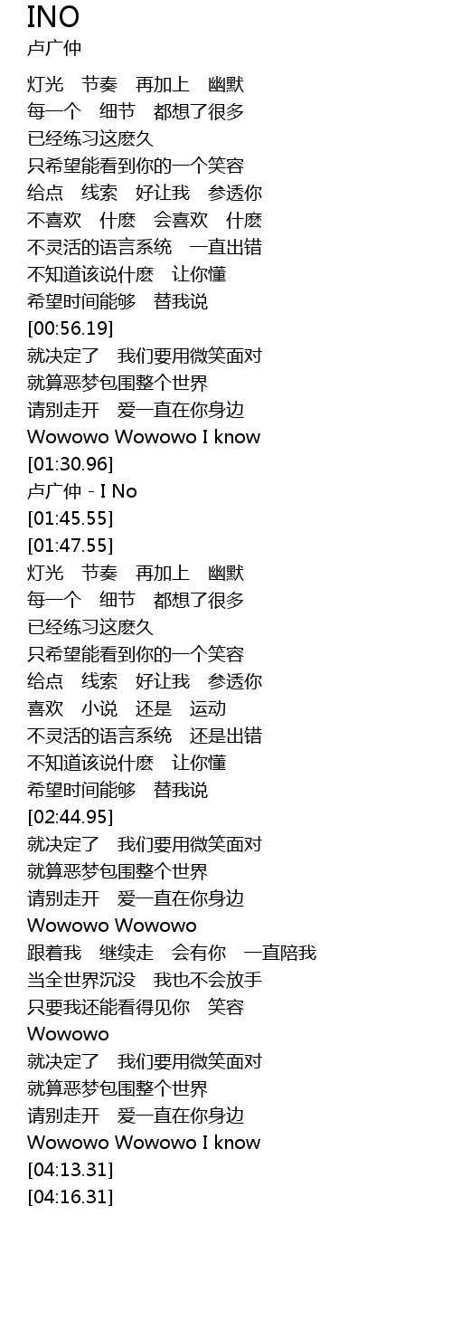 | [01:33.55] | 卢广仲 - I No |