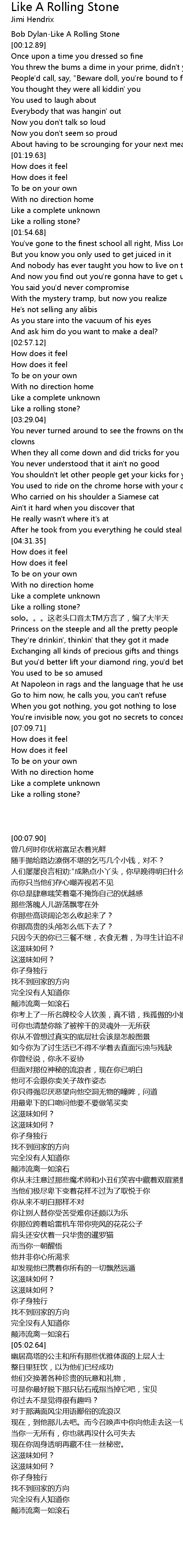 | [00:07.90] | Bob Dylan-Like A Rolling Stone |