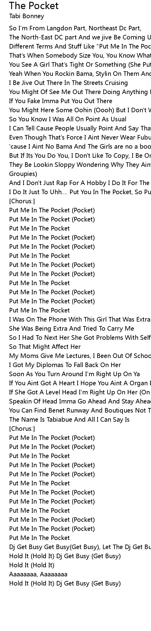I Do It Just To Uhh.... Put You In The Pocket, So Put Me In The Pocket |