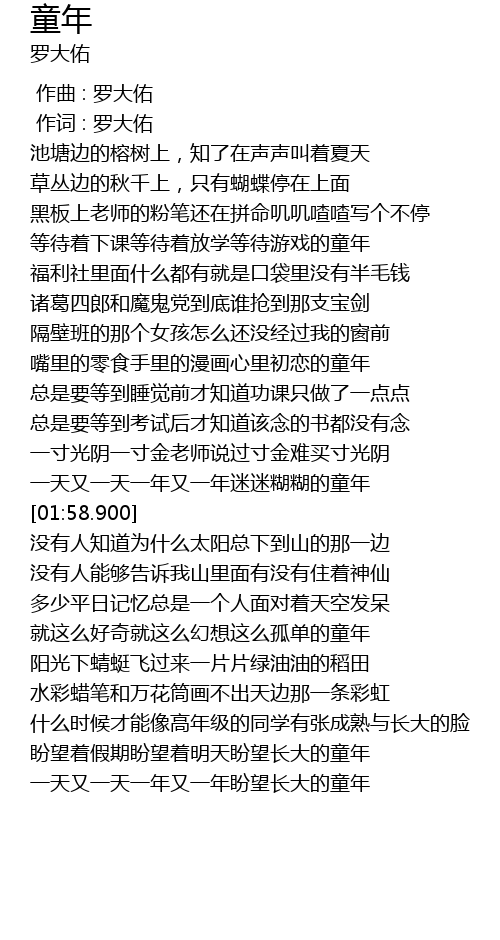 | [01:47.900] | 一天又一天一年又一年迷迷糊糊的童年 |