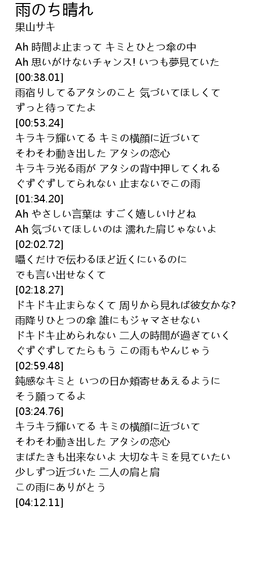| [04:07.43] | この雨にありがとう |