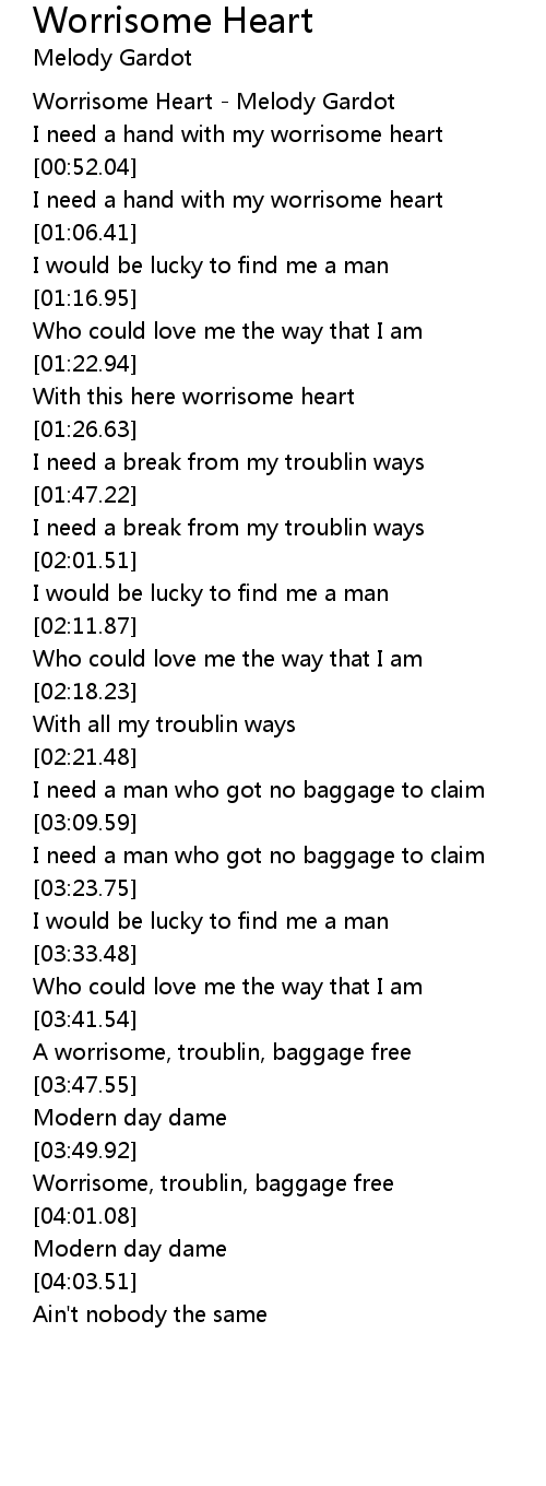 I need a hand with my worrisome heart |