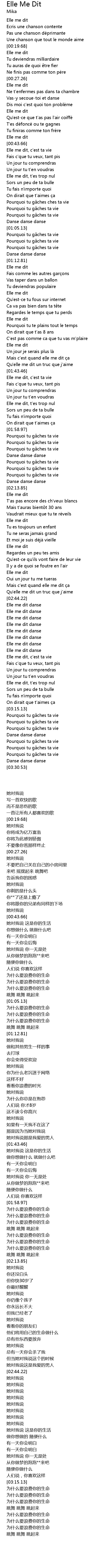 | [00:20.13] | Elle me dit |