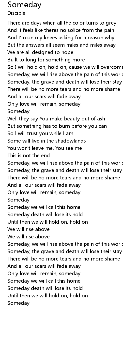 Someday, we will rise above the pain of this world |