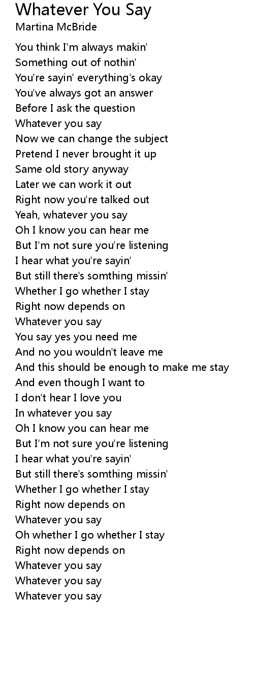 In whatever you say |