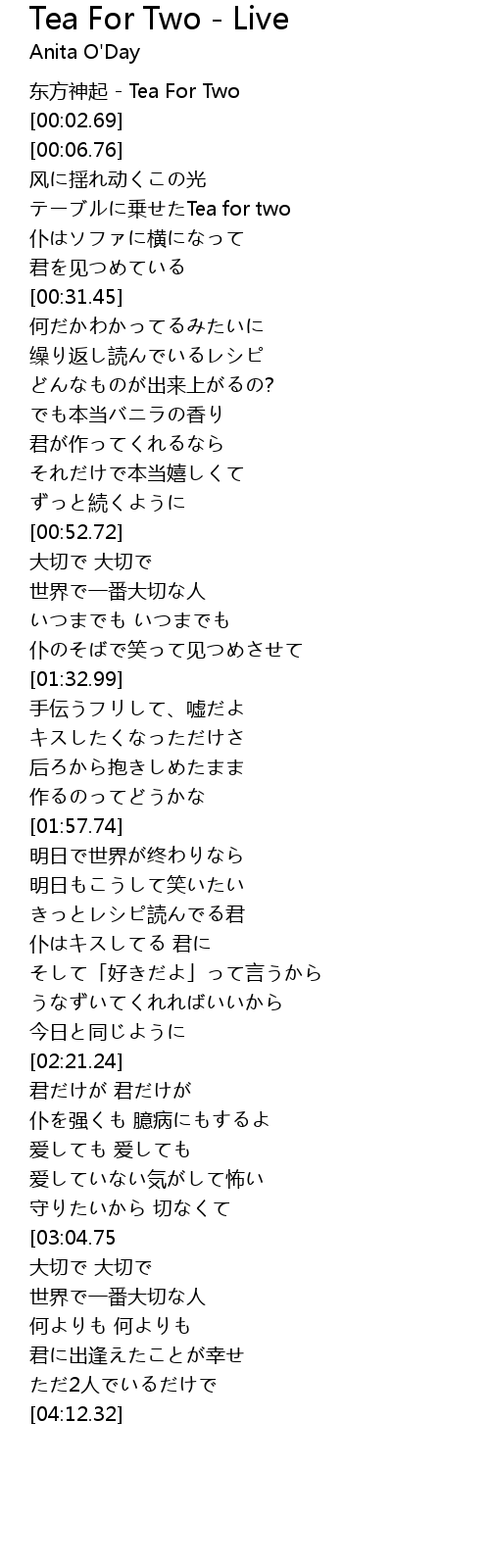 | [00:15.39] | cheng Tea for two |