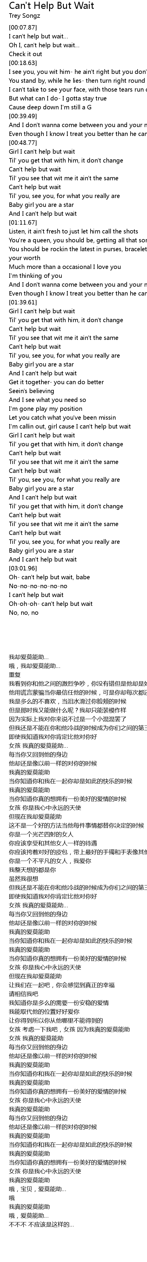 | [01:39.92] | Girl I can't help but wait |