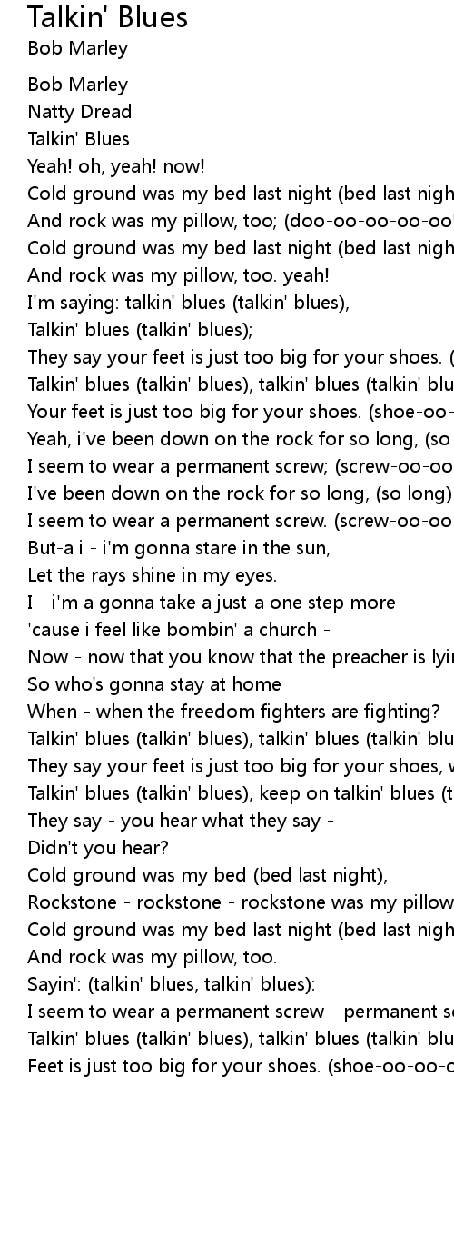 Talkin' blues (talkin' blues), keep on talkin' blues (talkin' blues); |