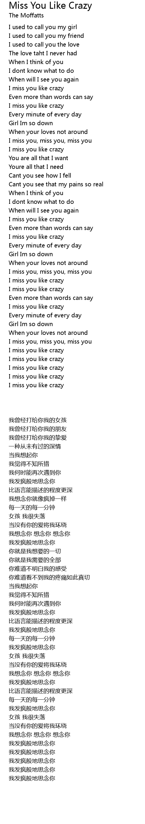 I miss you like crazy |