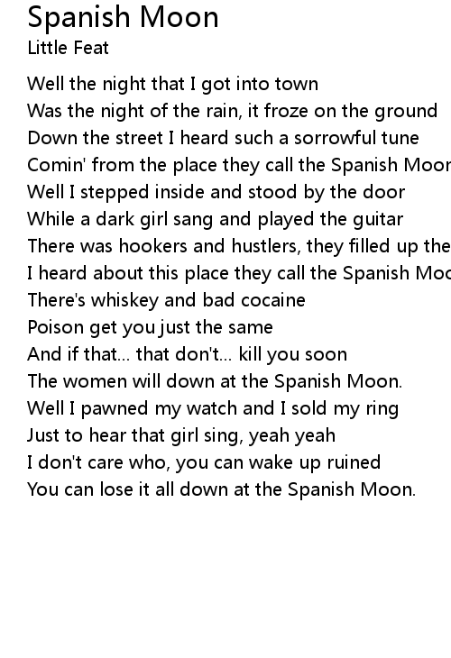 Comin' from the place they call the Spanish Moon. |