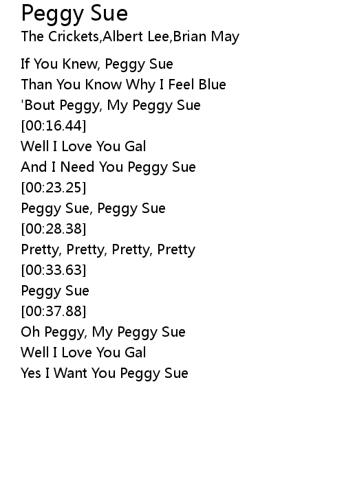| [00:25.94] | Peggy Sue, Peggy Sue |