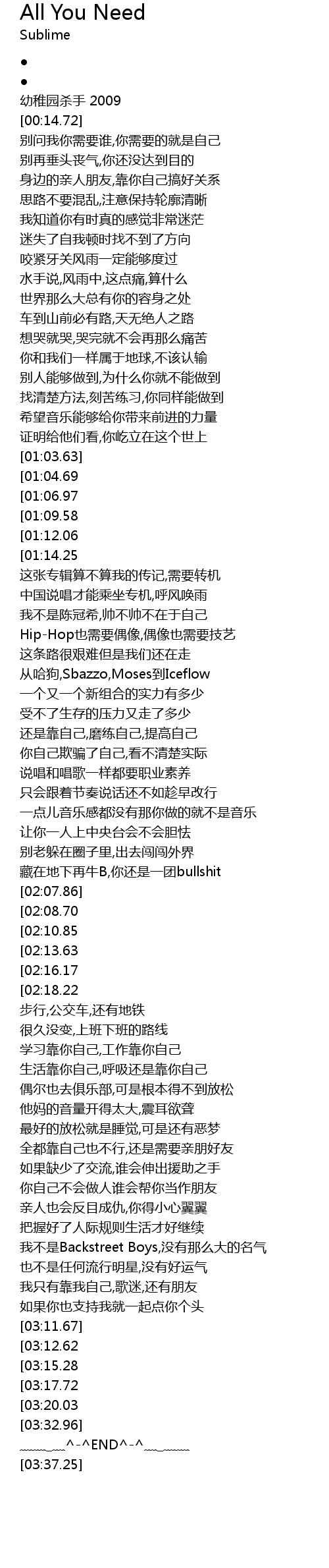 | [03:34.97] | ﹏﹏_﹏^-^END^-^﹏_﹏﹏ |