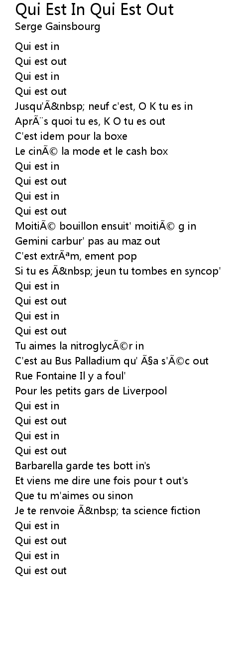 | Song | Qui Est In Qui Est Out |