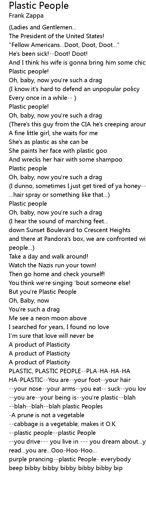 PLASTIC, PLASTIC PEOPLE--PLA-HA-HA-HA |