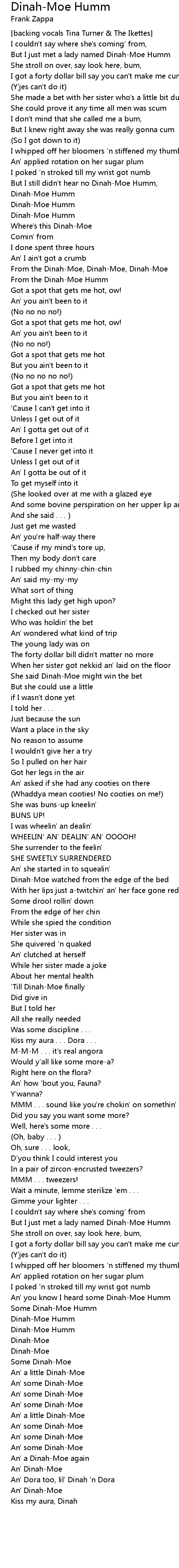 But I still didn't hear no Dinah-Moe Humm, |
