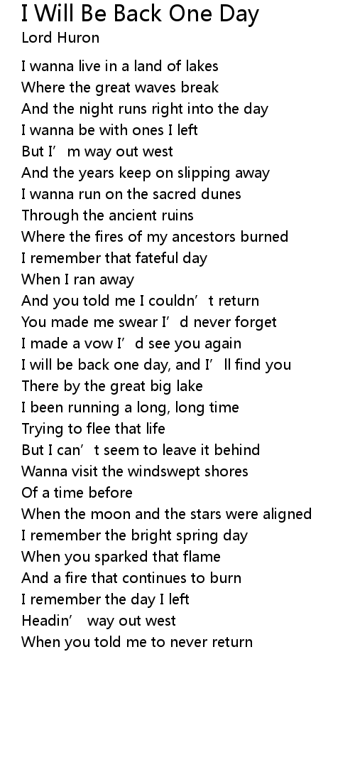 | Song | I Will Be Back One Day |
