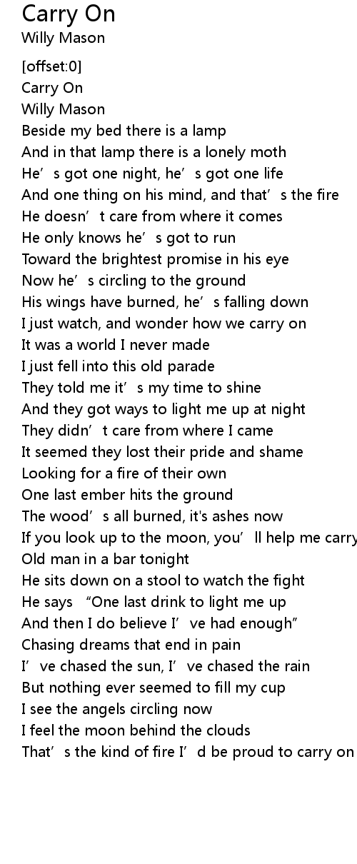 | [00:02.15] | Carry On |