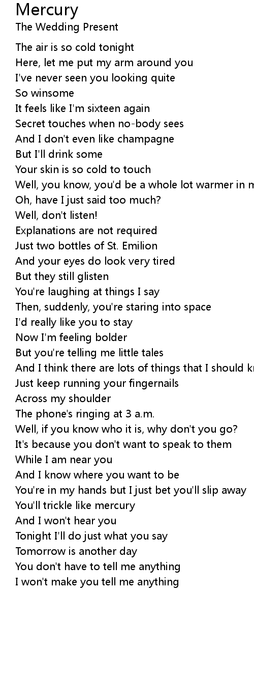 You'll trickle like mercury |
