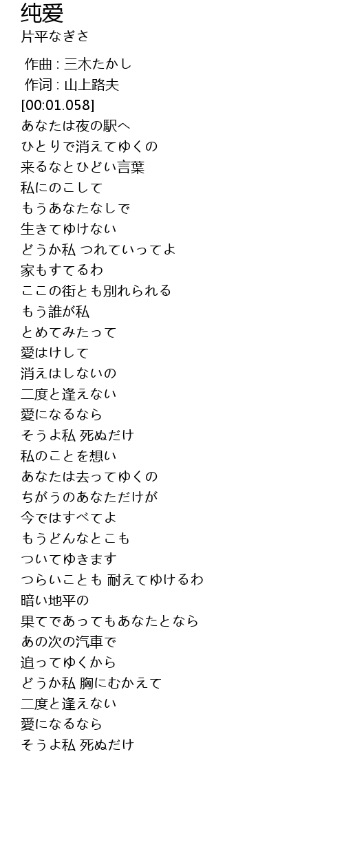 | [01:31.755] | 二度と逢えない |