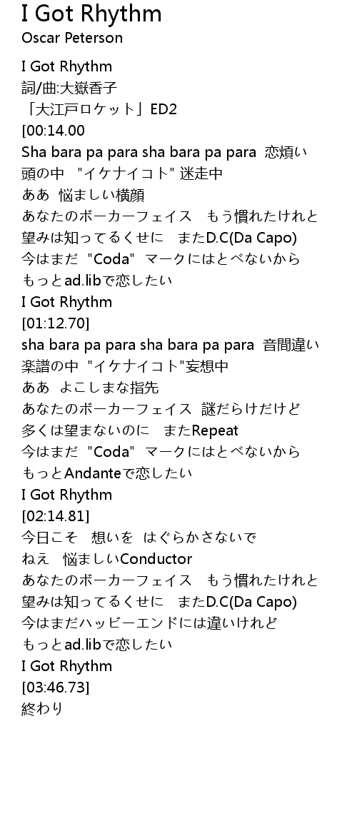 | [02:12.26] | I Got Rhythm |