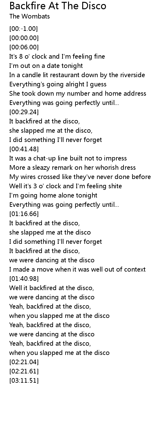 It backfired at the disco, |