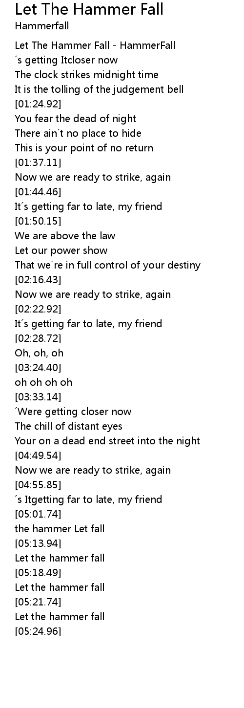| [00:01.01] | Let The Hammer Fall HammerFall |