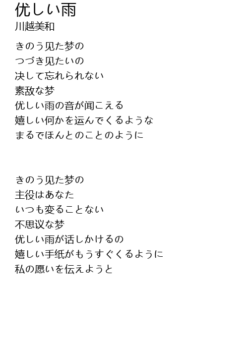 优しい雨 you yu Lyrics