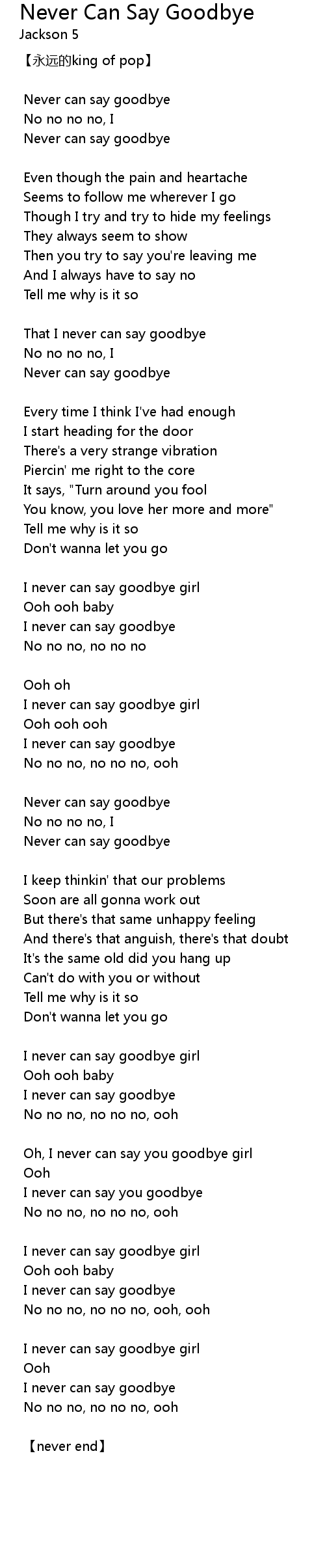 | Never can say goodbye | |
