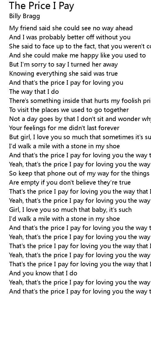 And that's the price I pay for loving you the way that I do |