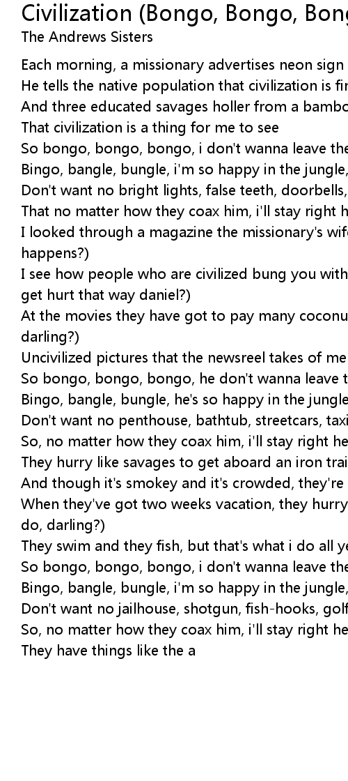 So bongo, bongo, bongo, i don't wanna leave the congo, oh no no no no no |