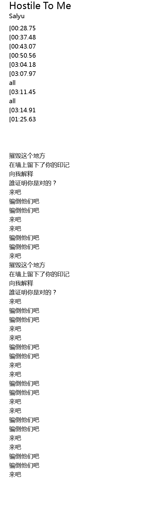 | [03:29.08][03:14.91][03:00.72][02:46.65][02:32.78][01:21.91][01:07.78] |