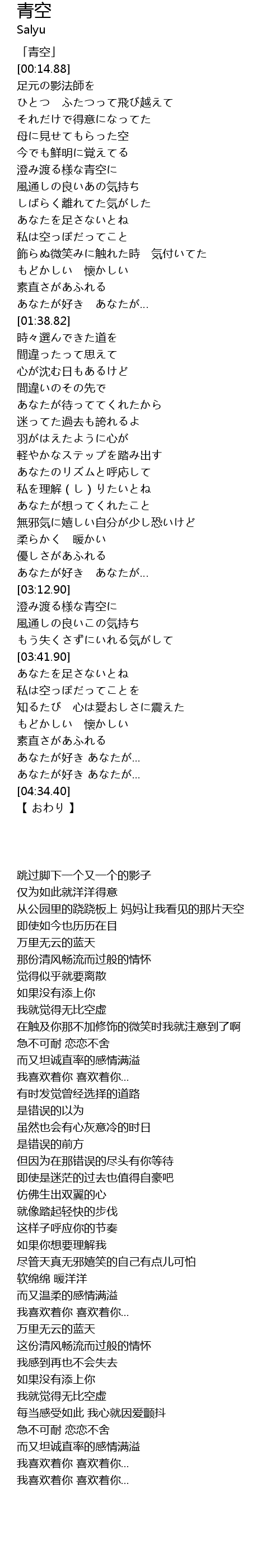| [00:01.88] | 「青空」 |