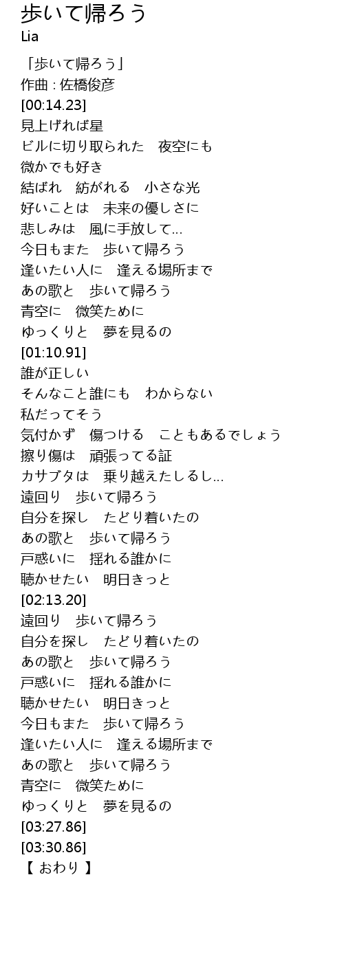 あの歌と 歩いて帰ろう |