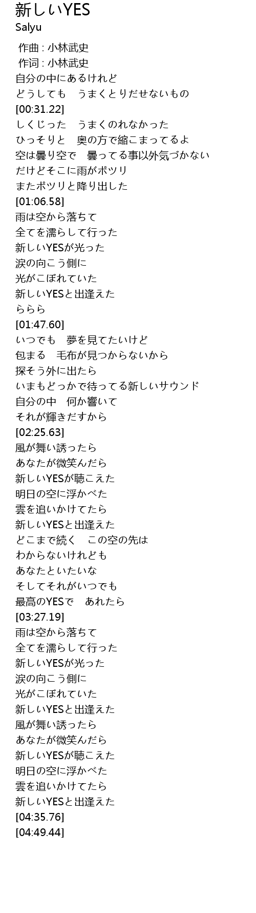 [04:00.85] 新しいYESと出逢えた