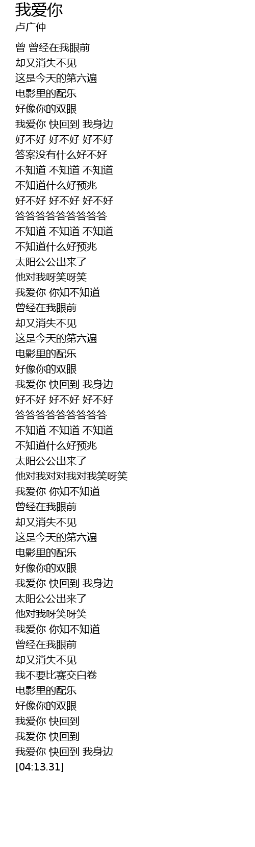 | [04:03.14] | 我爱你 快回到 我身边 |