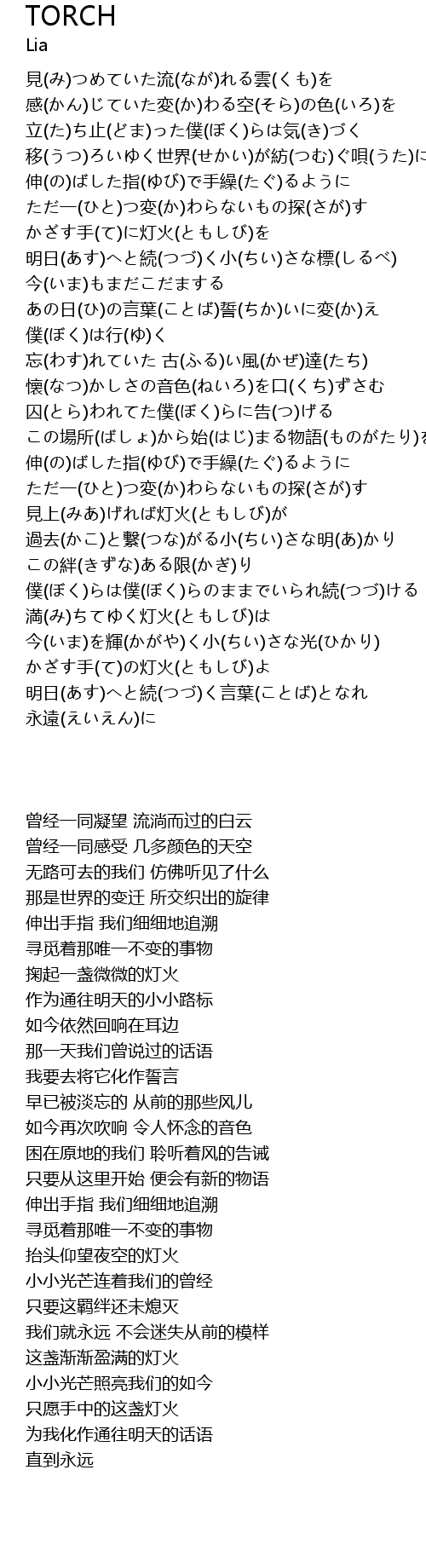 | [03:31.560] | 満(み)ちてゆく灯火(ともしび)は |