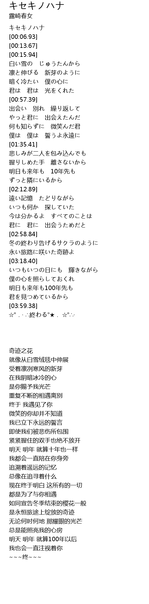 | [00:00.00] | キセキノハナ |
