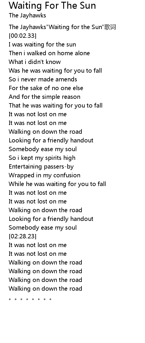 | [00:01.85] | The Jayhawks"Waiting for the Sun"歌词 |