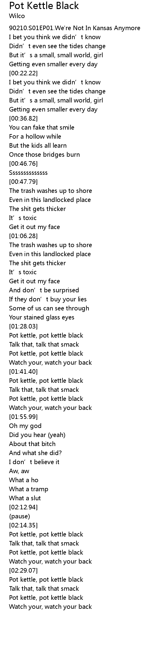 | [02:22.91] | Pot kettle, pot kettle black |