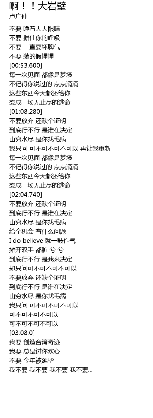 | [03:24.380] | 我不要 我不要 我不要 我不要... |