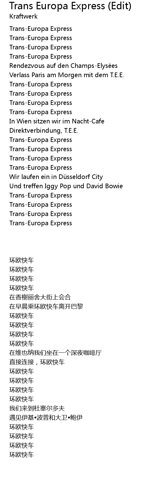 | [01:30.40] | Verlass Paris am Morgen mit dem T. E. E. |