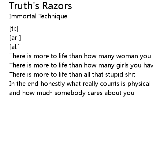 | Song | Truth's Razors |