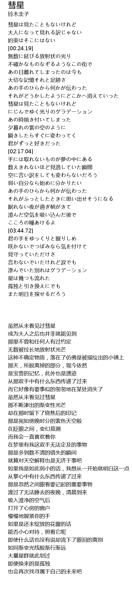 | [00:02.22] | 彗星は見たこともないけれど |