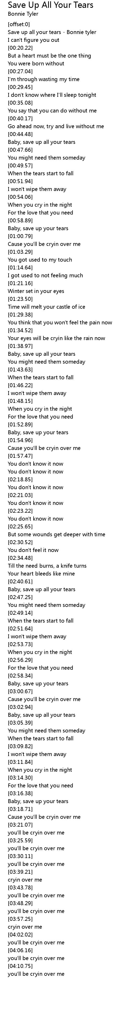 Save up all your tears - Bonnie tyler |