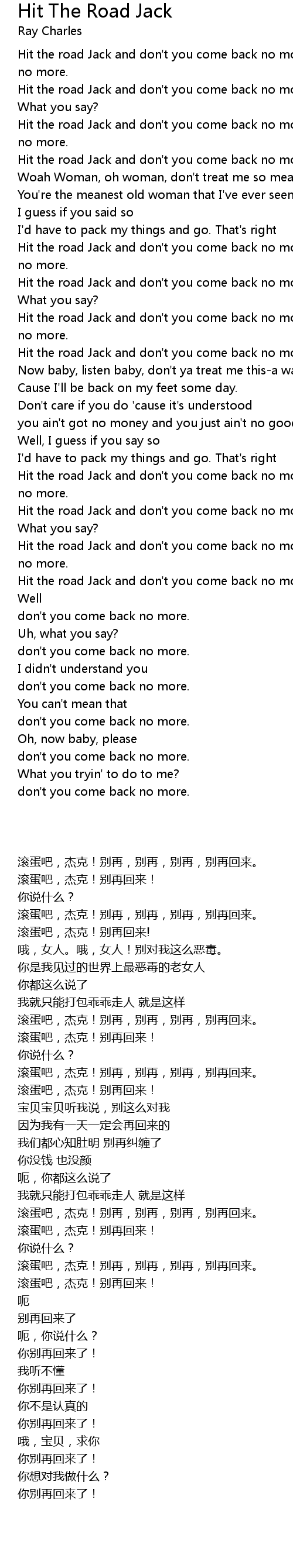 Hit the road Jack and don't you come back no more, no more, no more, no more. |