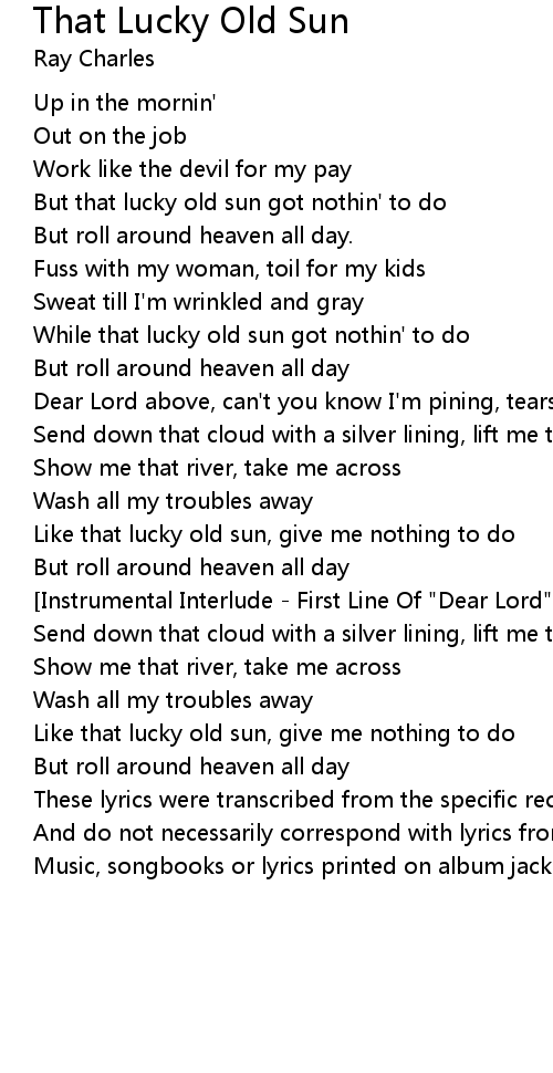But that lucky old sun got nothin' to do |
