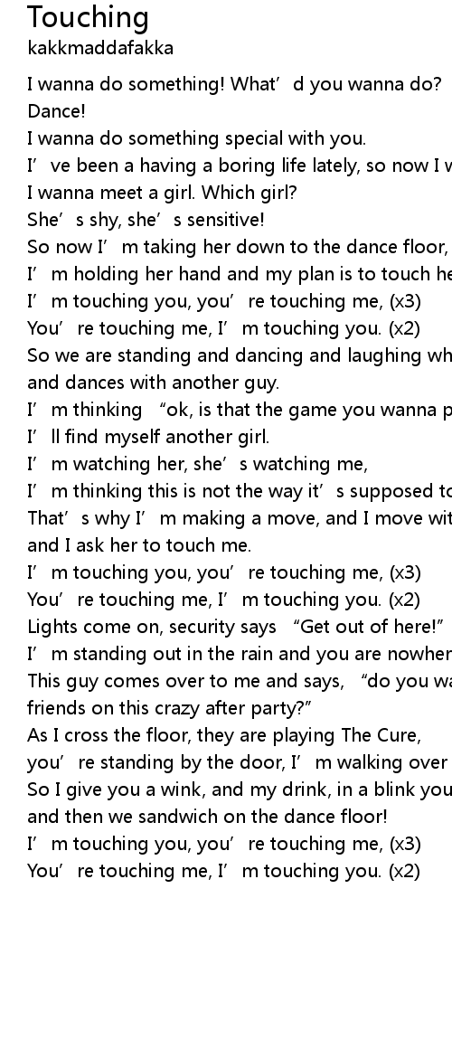 | You’re touching me, I’m touching you. (x2) |